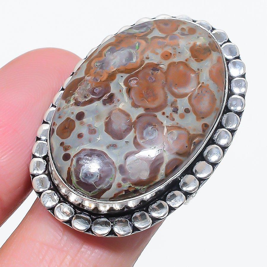 Натуральный камень Яшма Астероид Ювелирное изделие из серебра 925 пробы Кольцо Размер 9 j8i92