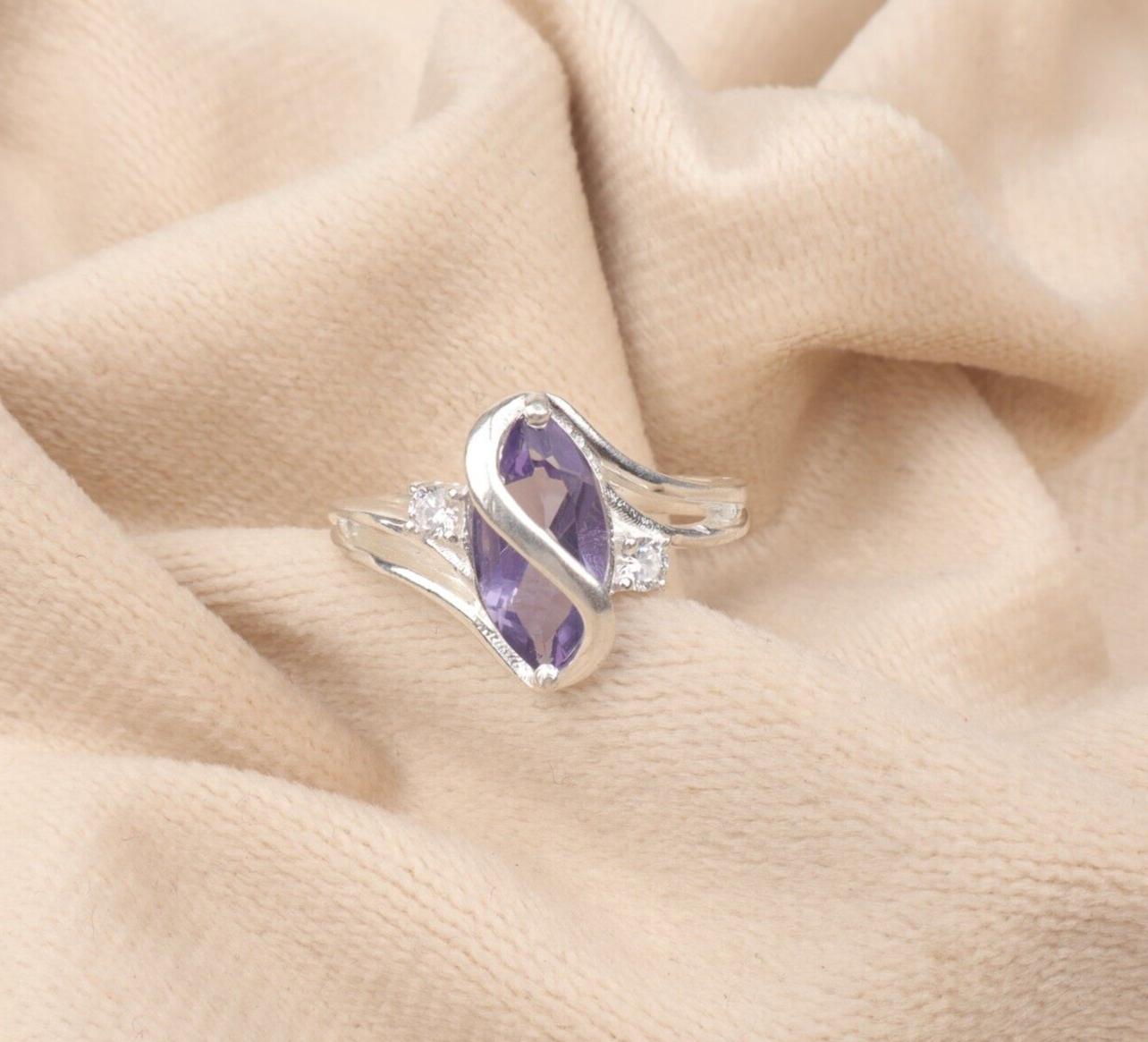 Натуральный камень иолит, ювелирное изделие из стерлингового серебра 925 пробы, женское кольцо с цирконом для подарка CZR-8-2 13