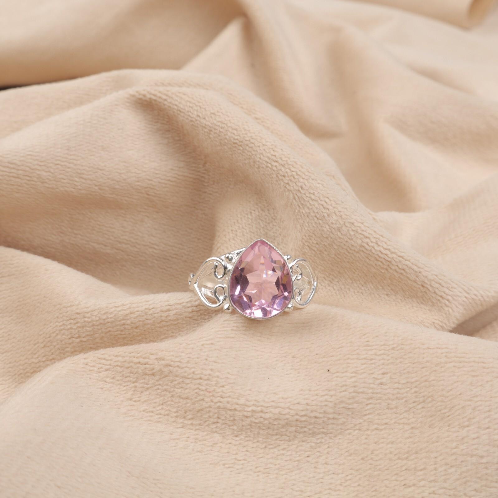 Натуральный камень морганит, серебро 925 пробы, ювелирные изделия, кольцо ручной работы, модное, RR-46-7 12.75
