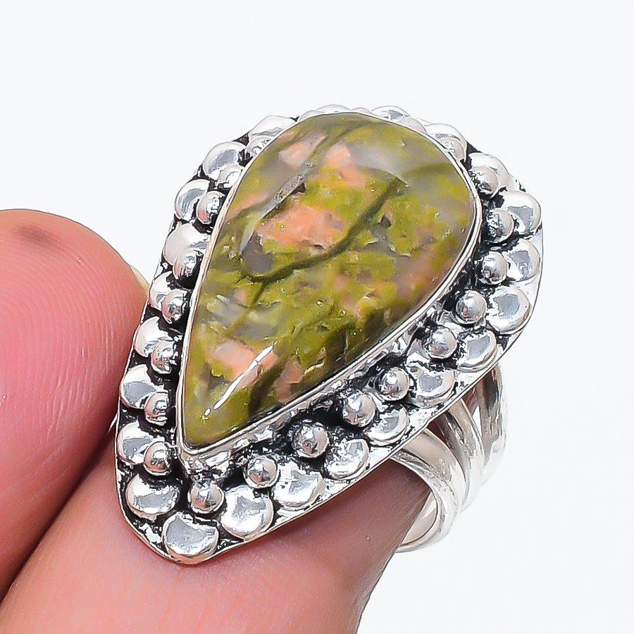 Натуральный камень унакит Ручная работа Ювелирное изделие из серебра 925 пробы Кольцо Размер 8 Q5W18
