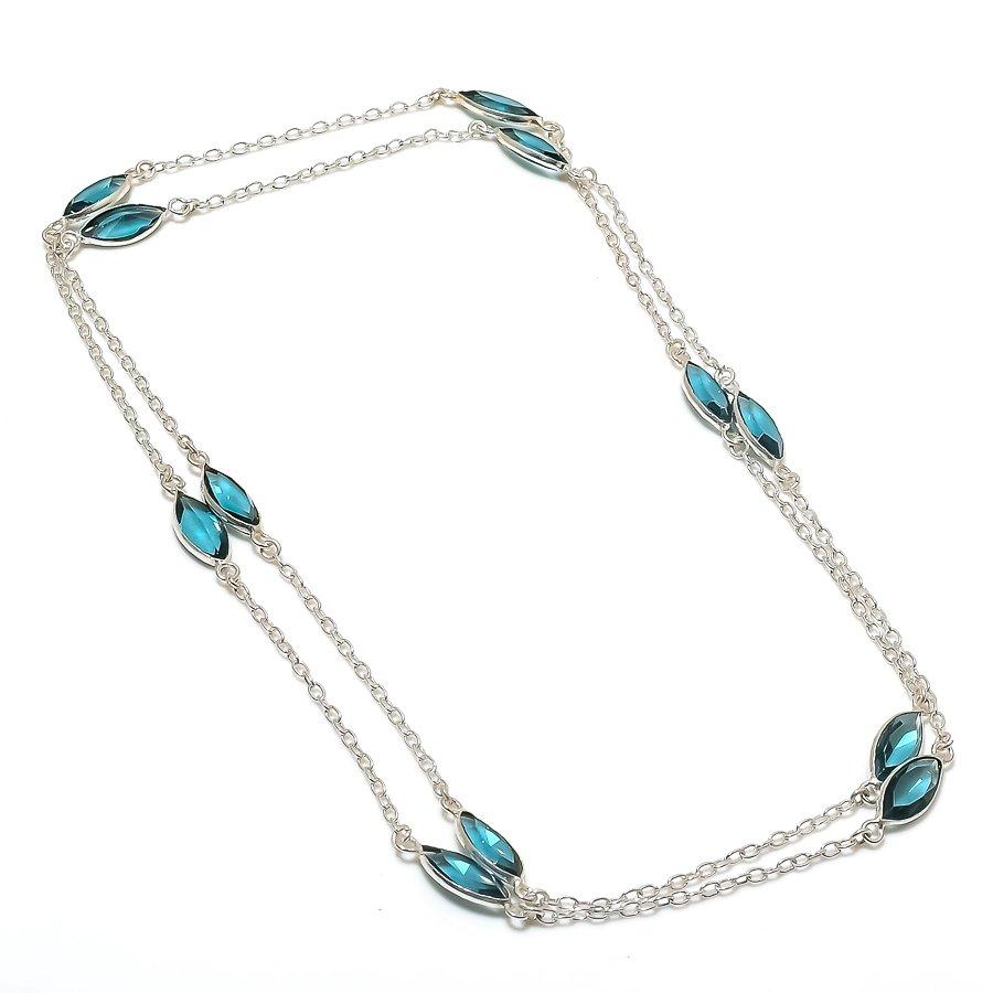 Натуральный кварцевый драгоценный камень иолит 925 пробы серебряное ювелирное ожерелье 18 дюймов c7y57