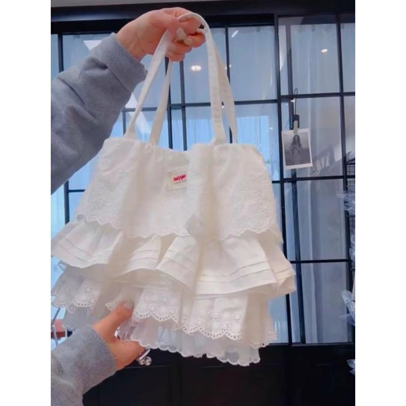 Нежная девушка Кружево Ламинированное Кружево Юбка Тканевая Сумка 2025 Новая Большая Вместимость Дорожная Сумка Тоут На Плечо Женская
