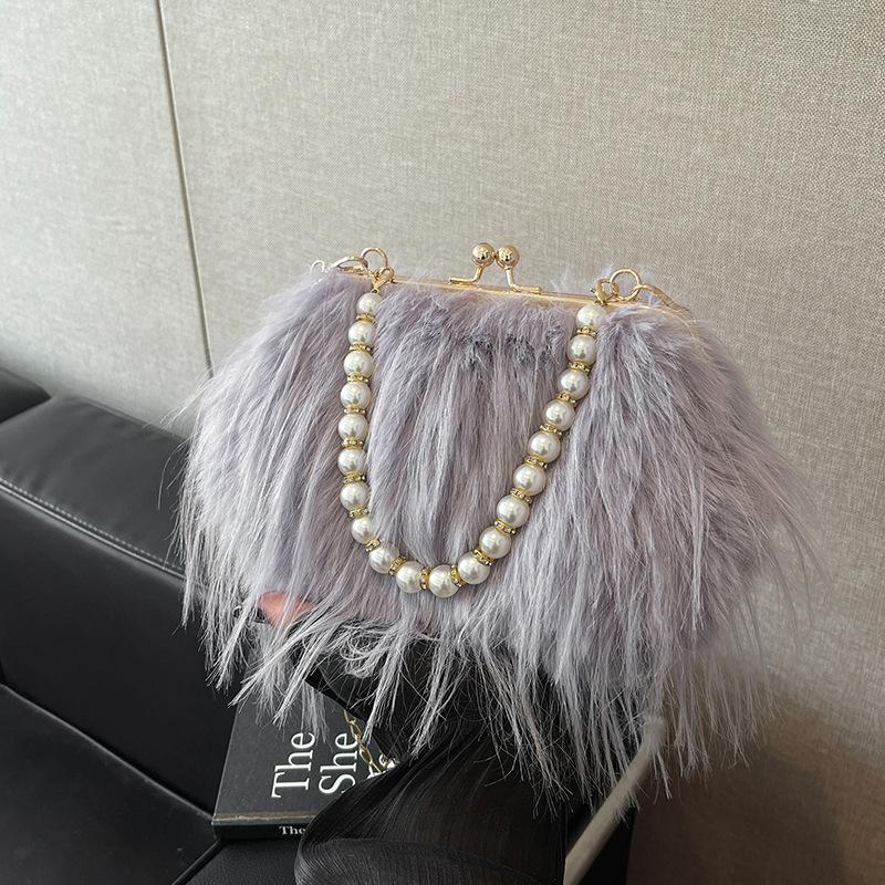 Нежная пушистая сумка-мессенджер женская осенне-зимняя плюшевая сумка с жемчужной цепочкой светло-фиолетовый