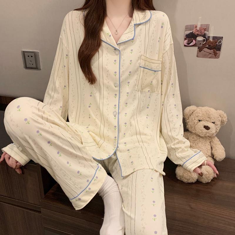 Нежный стиль жатый трикотаж кардиган с длинным рукавом пижамный комплект для девочек - можно носить на улице, новая весенняя коллекция M (80-100 kg)