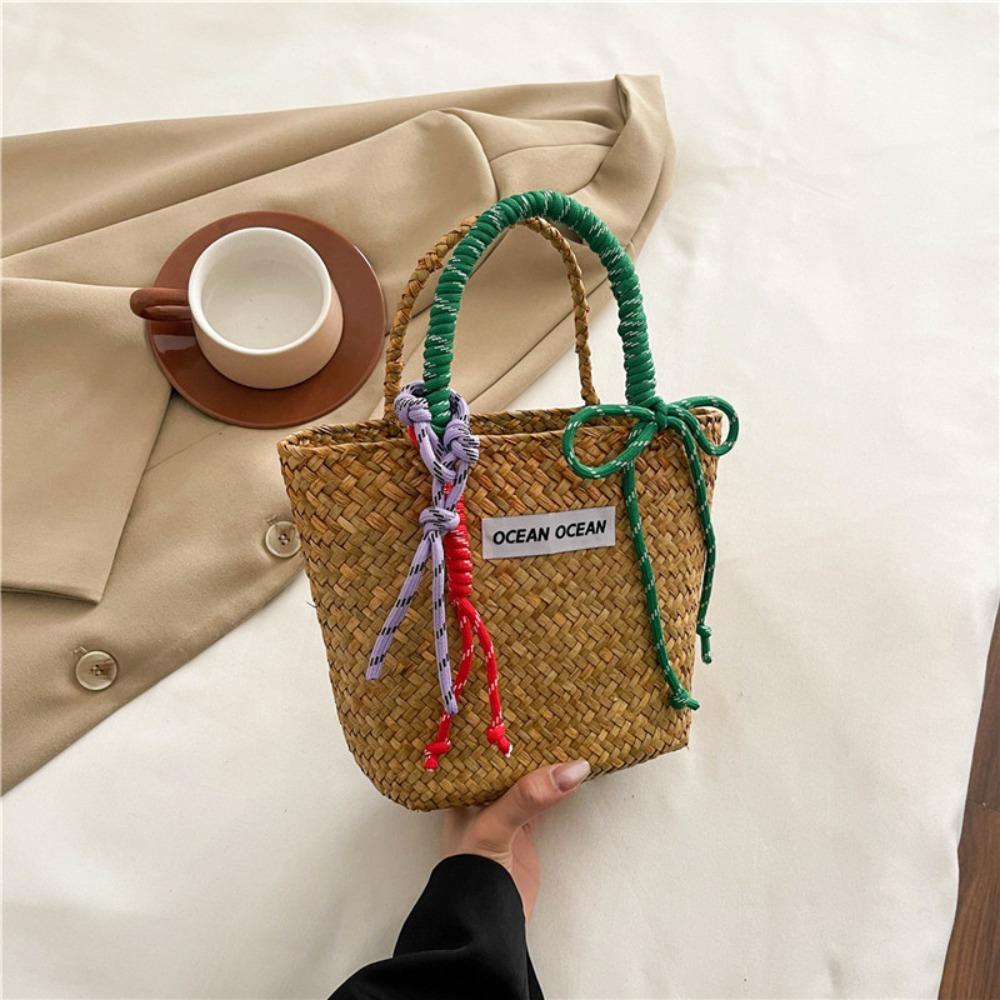 Нейлоновая плетеная сумка-тоут большой вместимости, летняя пляжная сумка, модная сумка из плетеной травы, лето зелёный
