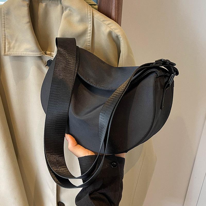 Нейлоновая тканевая сумка женская новая нишевая дизайнерская широкополосная наплечная сумка-мессенджер сумка-седло сумка-пельмень чёрный