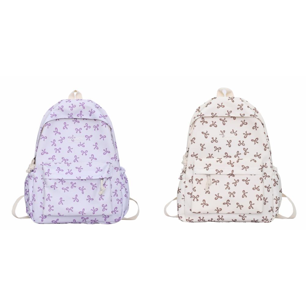 Нейлоновый студенческий рюкзак с бантом и принтом для девочек, женская сумка для книг, милый рюкзак (фиолетовый)