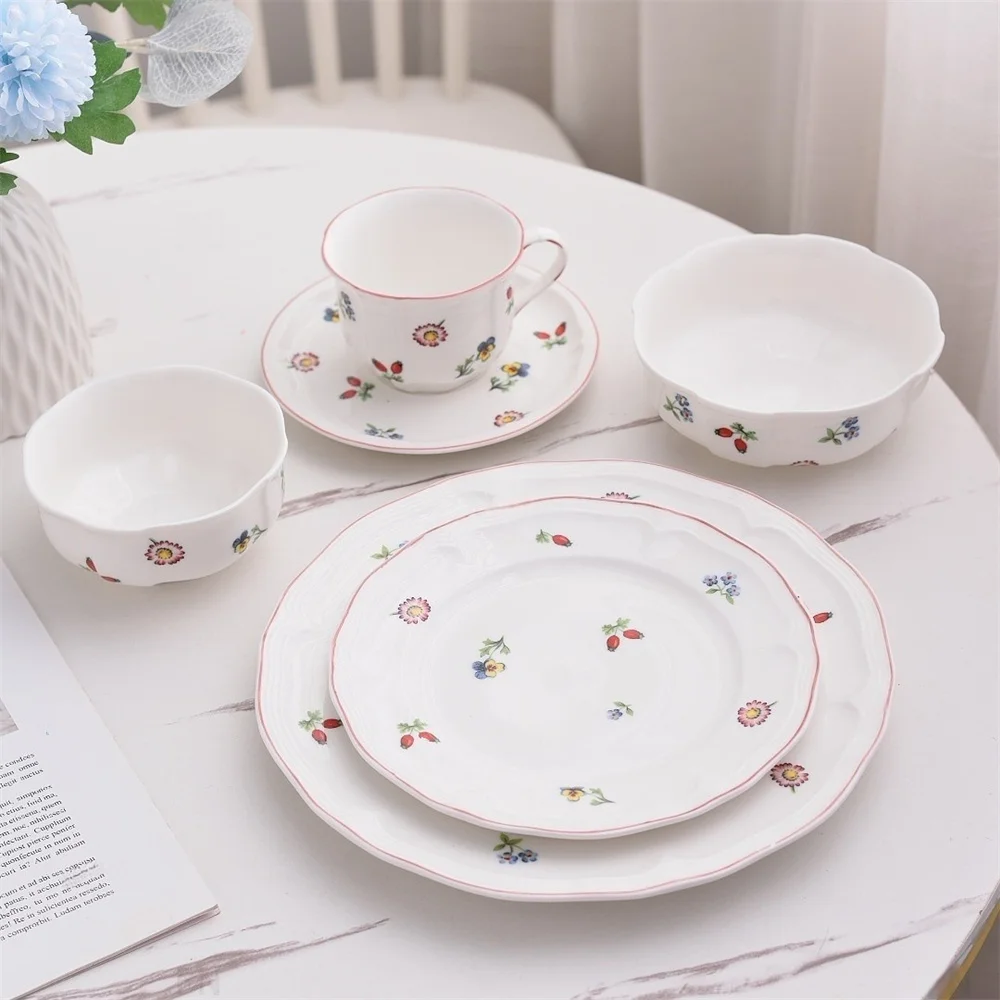 Немецкая керамическая посуда с маленьким цветком, европейская пасторальная салатница, тарелка, домашняя послеобеденный чай, кофейная чашка, блюдце, чайник