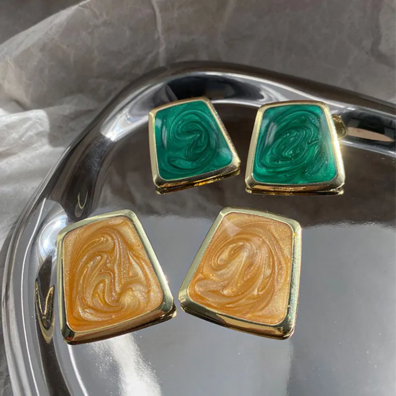 Необычная Геометрическая квадратная трапециевидная любовь красочные капельные масляные винтажные эмалированные шпильки серьги для женщи...