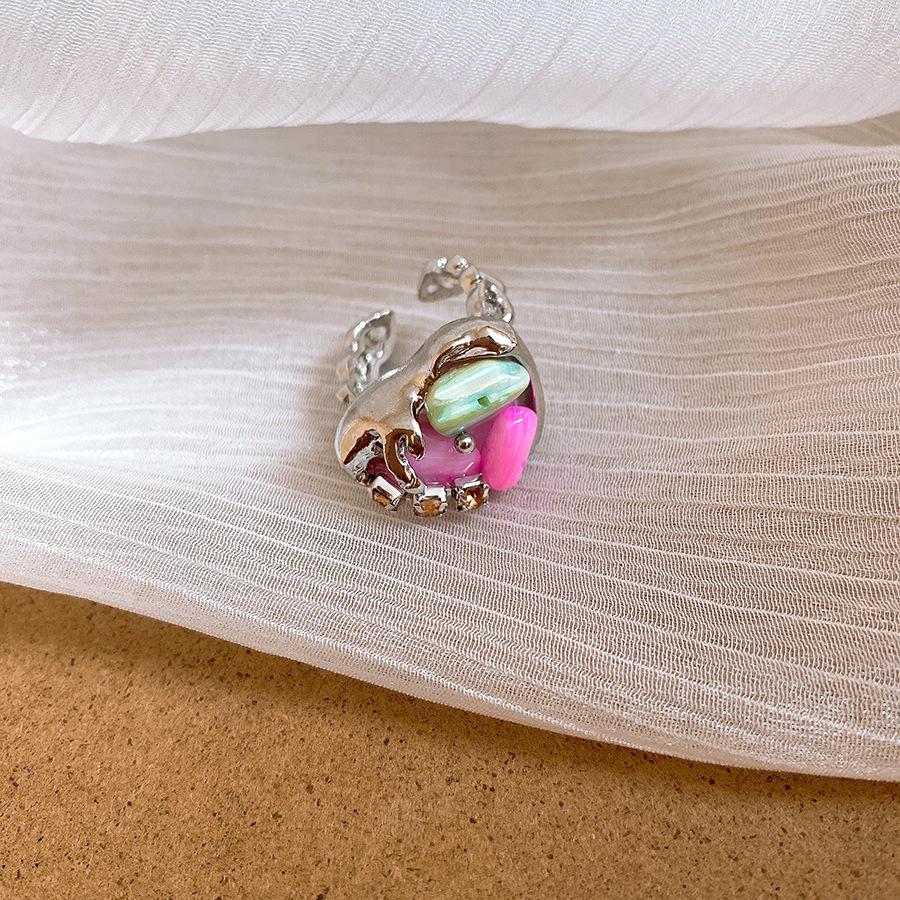 Необычное кольцо-раскрывающийся цветок из ракушки в форме ромба, милое, универсальное, модное, на указательный палец, нишевое, с характером, персонализированное украшение