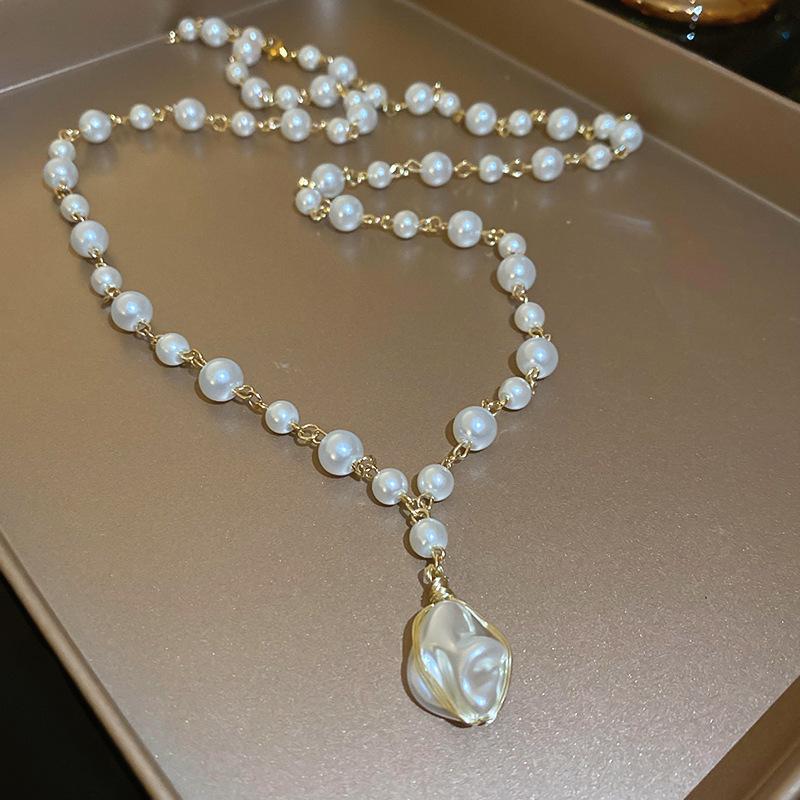 Необычное плиссированное ожерелье-шар из искусственного жемчуга, французская легкая роскошь, элегантная цепочка для свитера, модное ожерелье с темпераментом, женское