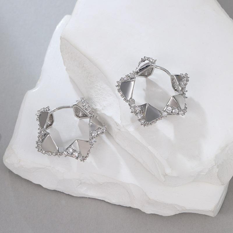 Необычные серьги с пряжкой для ушей. Изысканные серьги в форме пентаграммы с бриллиантами. Персональные серьги. 18K серебряный