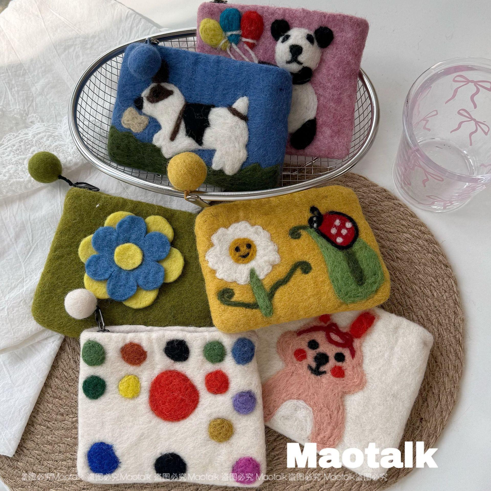Непальская ручная работа Шерстяной войлок Кошелек для монет Держатель для карт Милый животный Щенок Кошелек для монет Бигль Красный гриб Держатель для карт