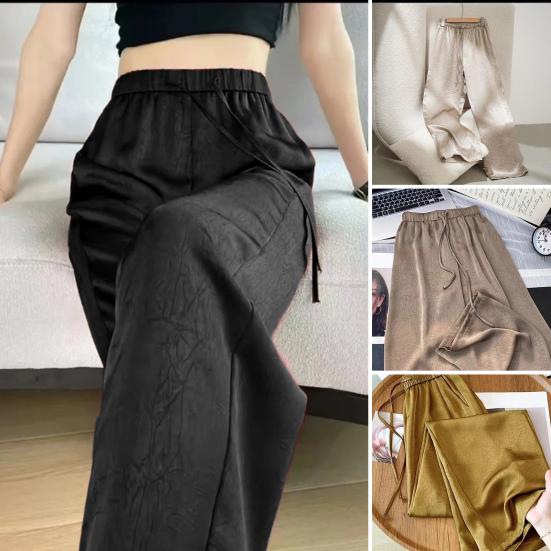 Женские повседневные брюки, эластичные брюки с высокой талией и регулируемым шнурком, прямые широкие брюки с карманами, однотонные крутые брюки из ледяного шелка