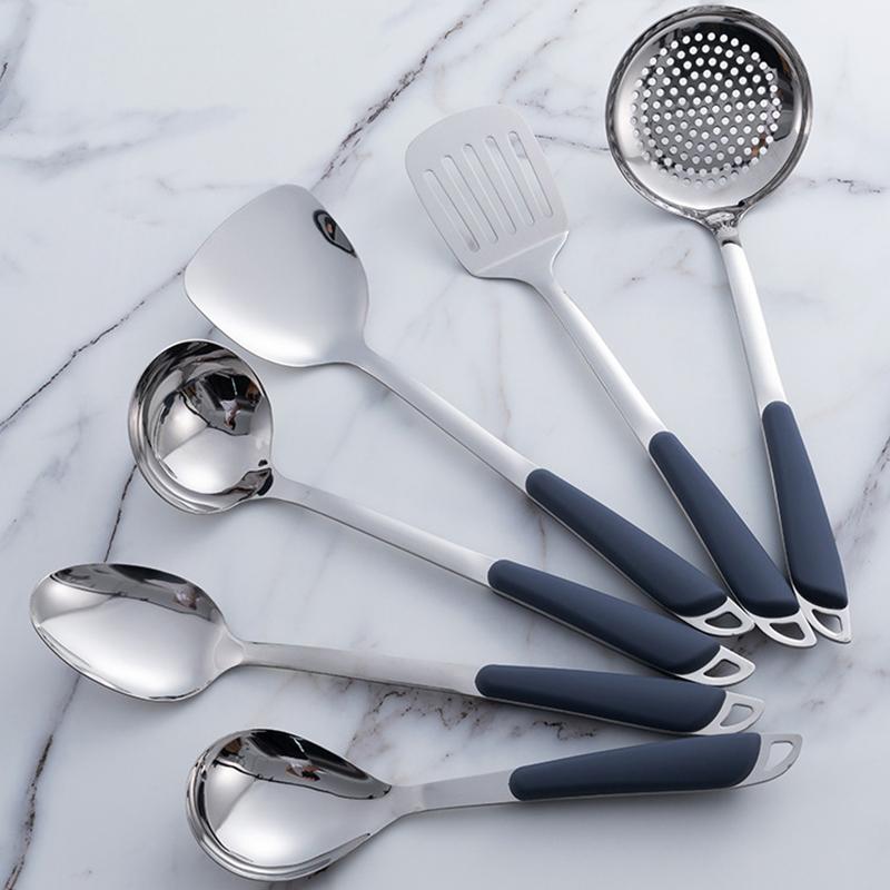 Нержавеющая сталь Кухонная лопатка Бытовая лопатка Шумовка Ложка для супа с длинной ручкой Ложка для риса утолщенная Набор для приготовления пищи серый