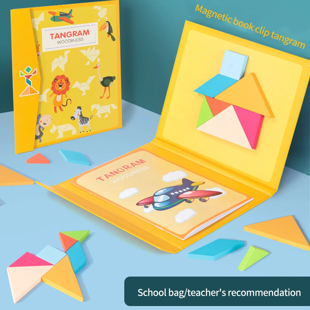 3D Wooden Magnetic Wooden Puzzle Jigsaw Tangram Book Toy Thinking Training Game Baby Montessori Educational Toys For Children