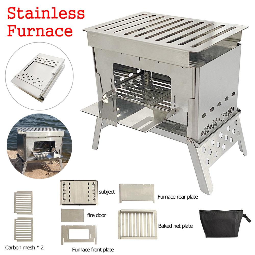 Нержавеющая сталь гриль-печь для барбекю портативная складная дровяная печь для барбекю многофункциональная для рыбалки, пешего туризма, выживания, кухонная посуда, инструмент