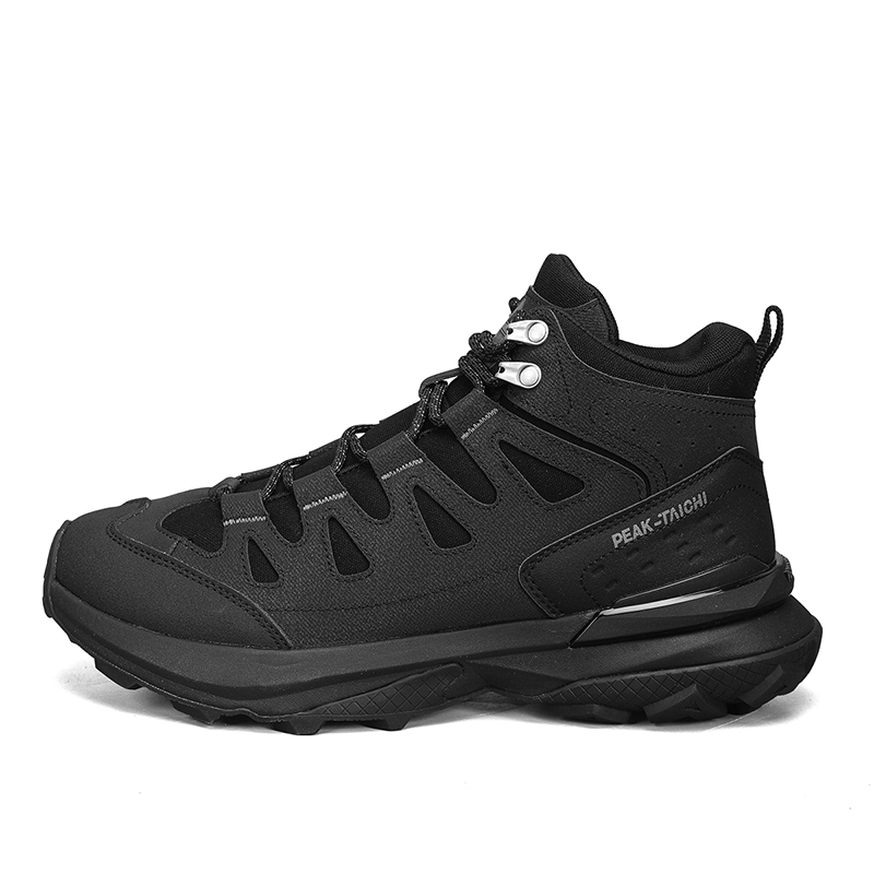 PEAK Мужские походные ботинки с высокой подошвой, износостойкие, нескользящие, полностью черные