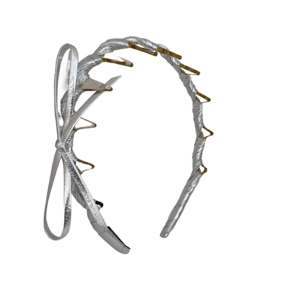 Нескользящая волнистая повязка для волос U-образной формы из ПУ кожи, милая повязка на голову с бантом, для умывания лица серебряный