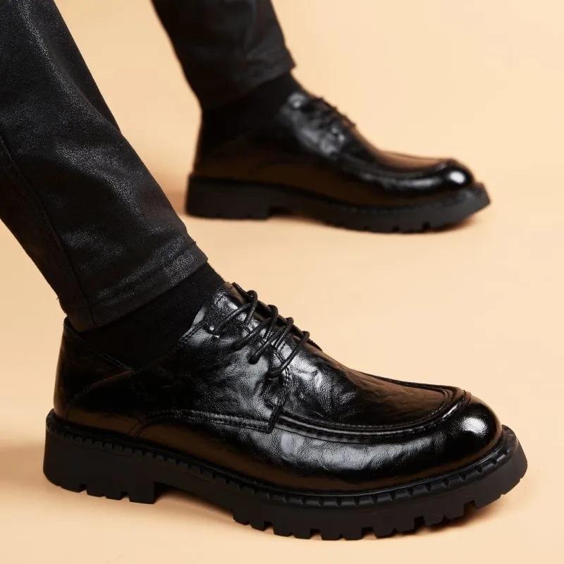 Нескользящая обувь для увеличения роста, толстая подошва, однотонные японские кожаные туфли, формальные туфли на шнуровке, повседневные кожаные туфли, дышащая корейская версия 44