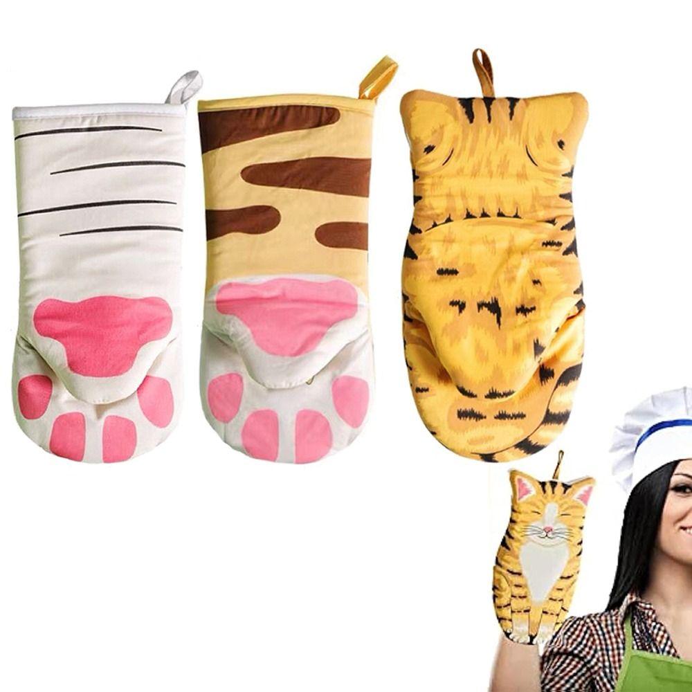 Нескользящие перчатки для выпечки с героями мультфильмов, изоляционные хлопковые прихватки для духовки, забавные кошачьи лапки, прихватки для барбекю