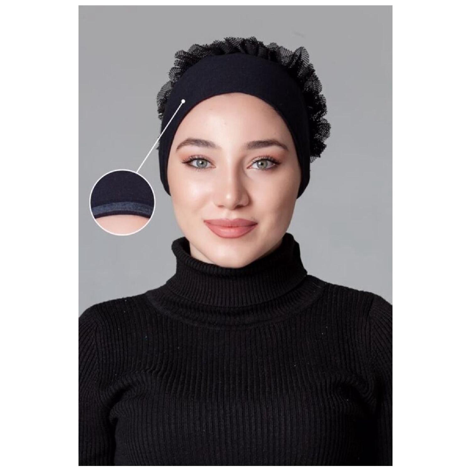 Нескользящий чепчик из чесаного хлопка черного цвета с оборками Standart чёрный