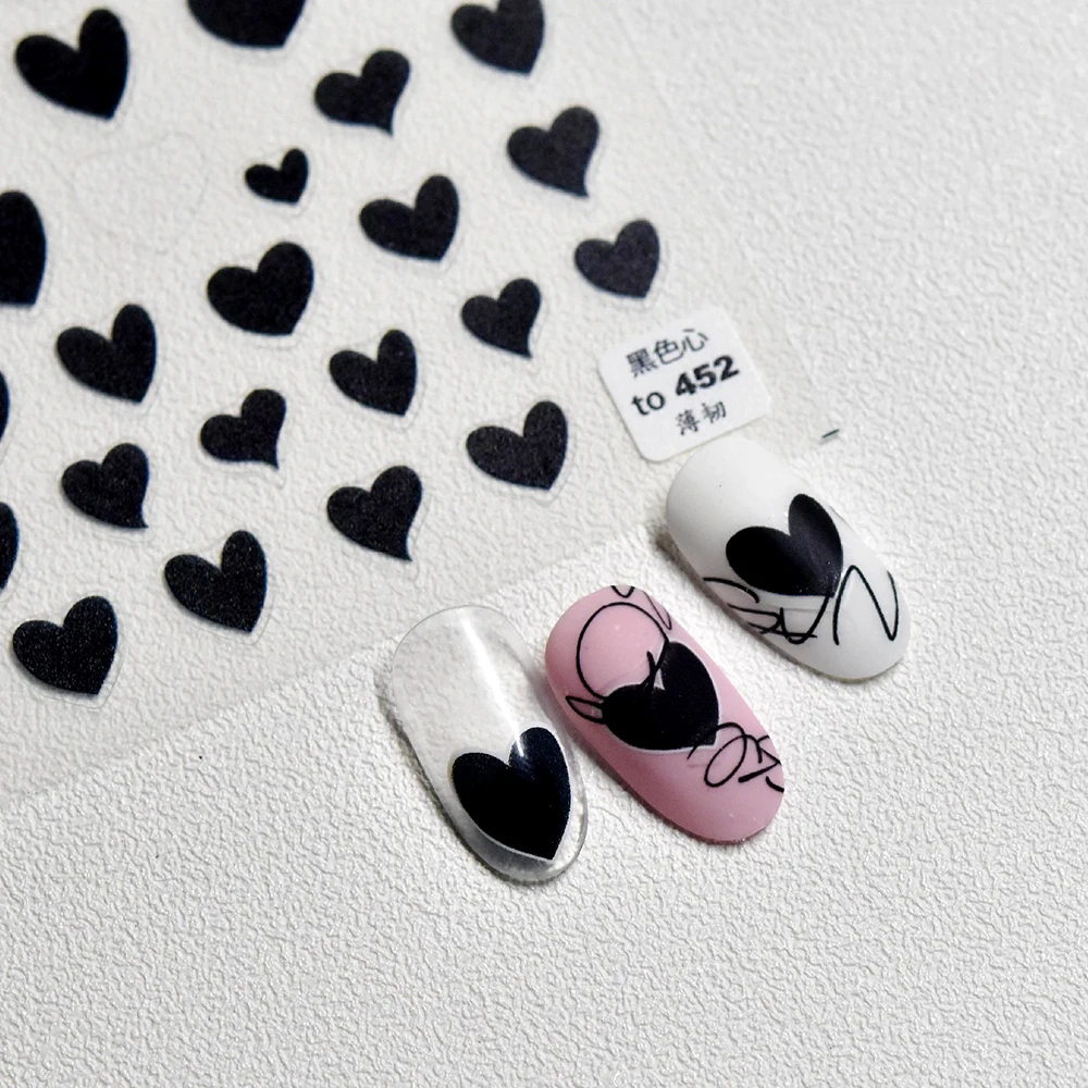 Несколько стилей черные белые Любовь Сердце 3D Самоклеящиеся украшения для ногтей наклейки милые романтические простые DIY маникюрные перев...