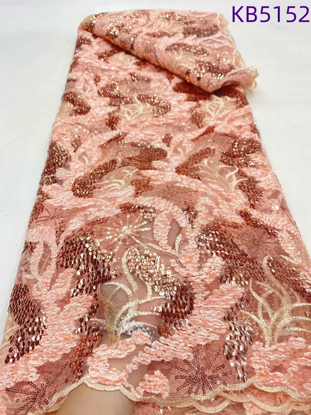 Нигерийская зеленая французская сетчатая сетка с бисером, африканская кружевная ткань, 5 ярдов, высокое качество, 2025 блесток, тюль, кружевная ткань для шитья KB5152