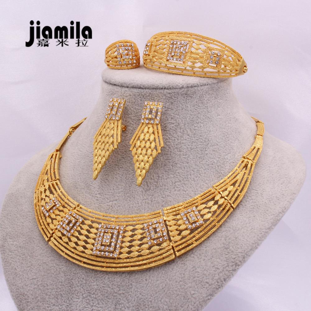 Нигерия Орнамент Серьги Кольцо Браслет Ожерелье Комплект ювелирных изделий из четырех частей Эфиопия Дубай Орнамент
