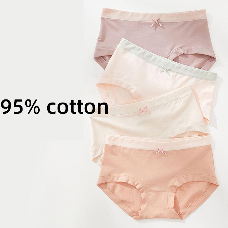 Нижнее белье женское из чистого хлопка со средней талией, мягкие и удобные антибактериальные дышащие шелковые антибактериальные треугольные брюки с нижней промежностью для девочек
