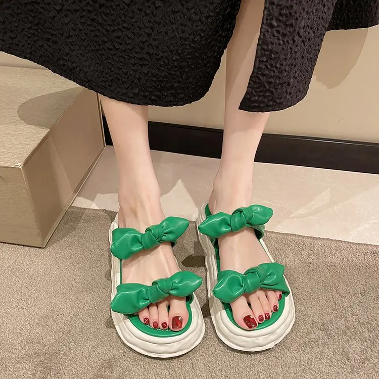 Низкие Шлепанцы женские Летние сланцы женская обувь на платформе с бантом-бабочкой модные Лоферы 2022 Роскошная плоская Базовая резиновая ба...