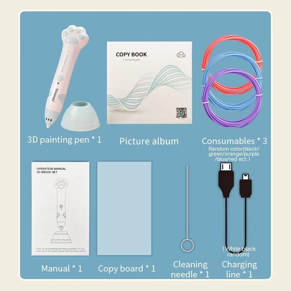 Низкотемпературная 3D-ручка для печати, полный набор 3D-ручки с 3 цветами, 1,75 мм/0,068 дюйма, нить PCL, лучший подарок на Рождество, день рождения, ручка DIY, перезаряжаемая через USB зелёный