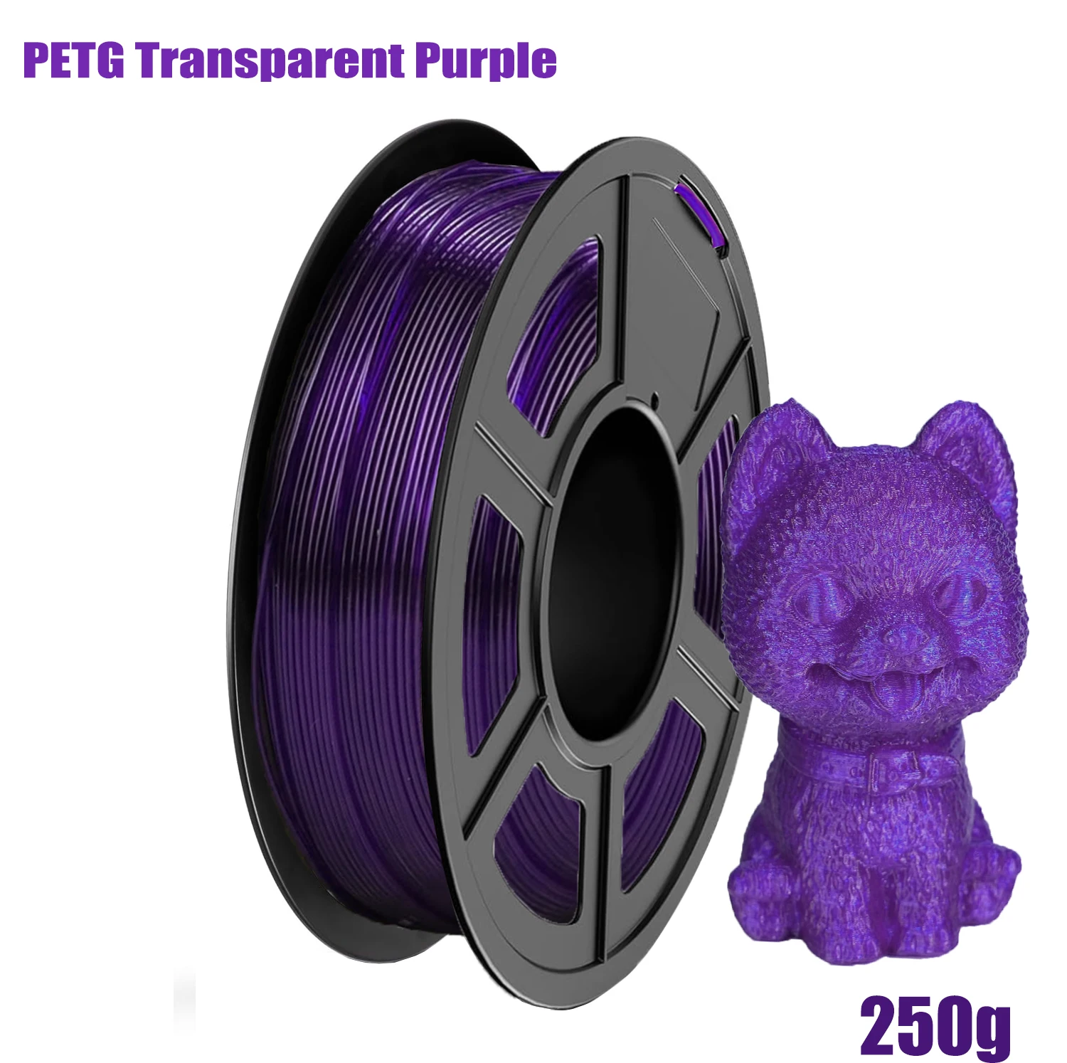 Нить PETG 1,75 мм, полупрозрачная нить для 3D-принтера, точность размеров +/- 0,02 мм, полупрозрачный фиолетовый