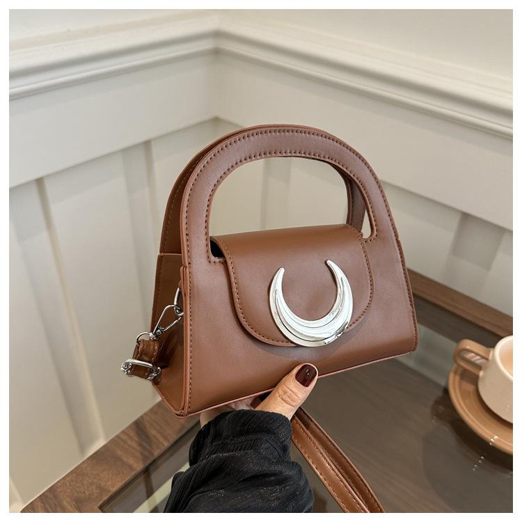 Нишевая высококачественная женская сумка 2024 года, новая полукруглая сумка через плечо, универсальная сумка-мессенджер в стиле ретро, однотонная сумка-мессенджер прилив темно-коричневого