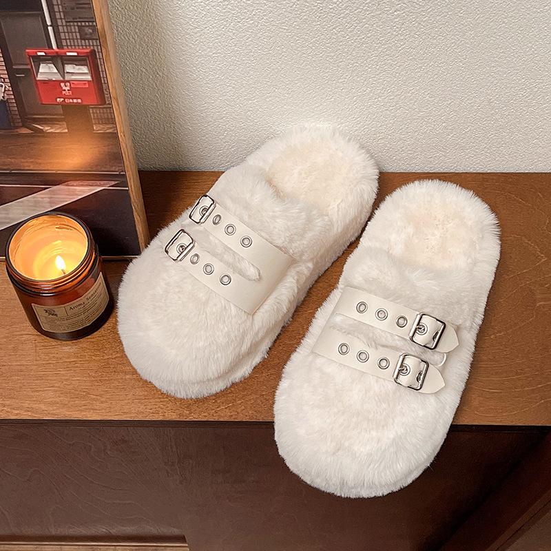 Нишевая высококлассная модная сумка голова Мао Мао тапочки женские осень-зима 2025 новая верхняя одежда ремень с пряжкой сумка голова хлопковый моп 40