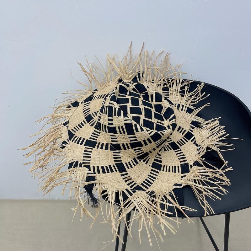 Нишевая дизайнерская шляпа из рафии с большими полями и необработанным краем, женская летняя универсальная пляжная шляпа от солнца из соломы Adult (56-58cm)