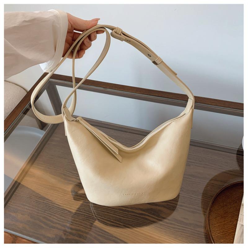 Нишевая ленивая сумка-пельмень из мягкой кожи с масляной восковой отделкой, женская сумка для通勤, повседневная сумка большой вместимости, модная однотонная сумка через плечо бежевый