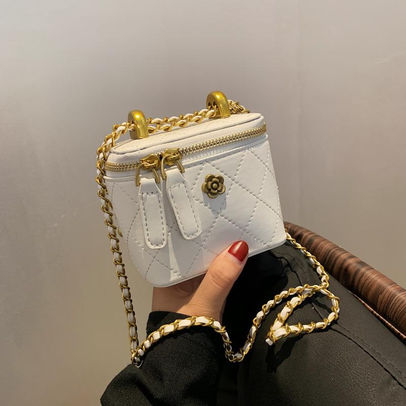 Нишевая мини маленькая сумка женская новая модная сумка через плечо с цепочкой в виде ромба, сумка-мессенджер, сумка-коробочка для помады белый