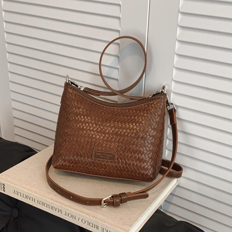 Нишевая плетеная сумка подмышку женская новая модная на плечо, сумка-мессенджер, летняя ретро сумка-ведро коричневый