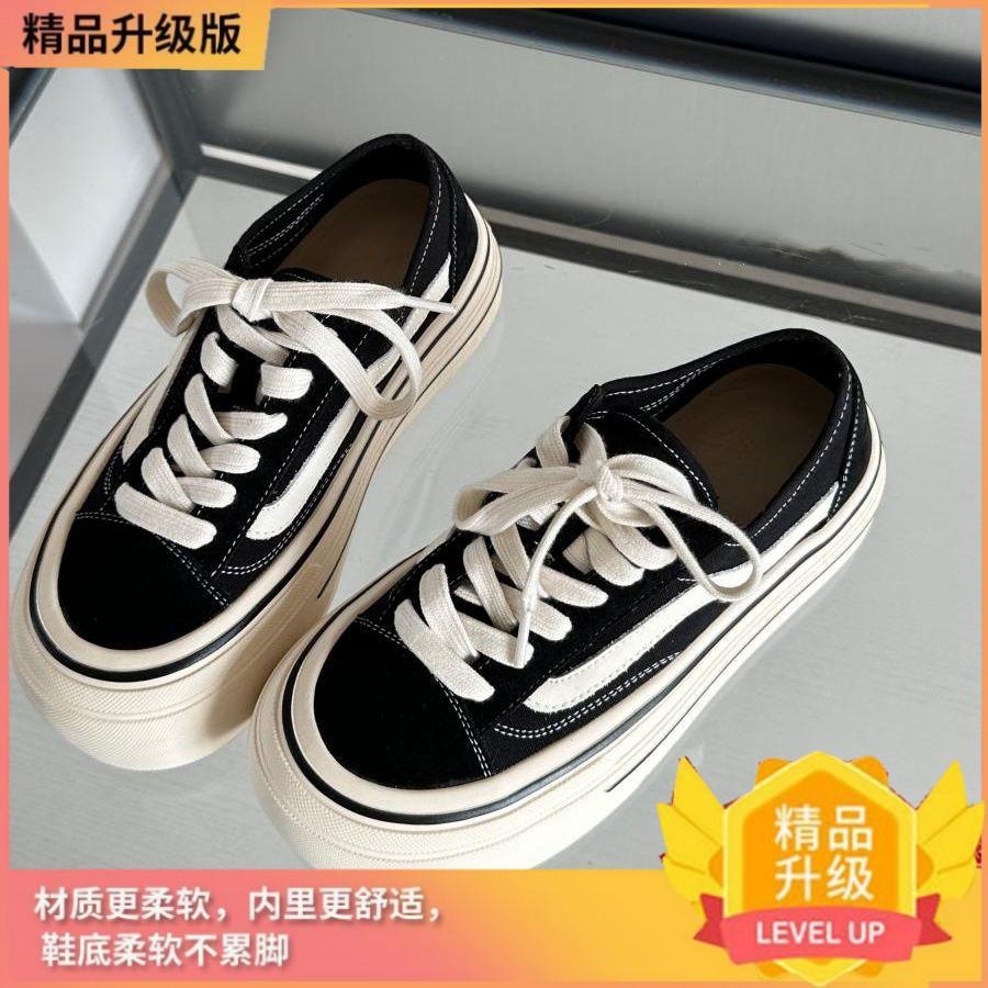 Нишевая повседневная уличная спортивная обувь на доске, маленькие белые туфли, высокая подошва, уродливые милые туфли с большой головой, универсальные классические туфли на платформе из парусины, женские 37 чёрный