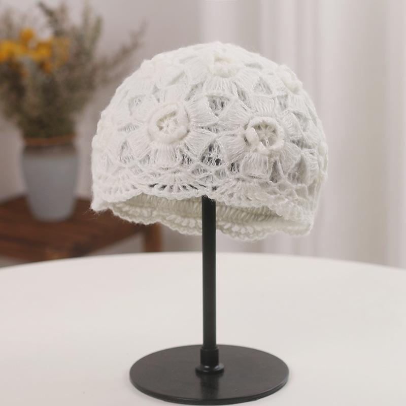 Нишевая ретро литературная кружевная цветочная ажурная шляпа женская милая модная вязаная шерстяная шапка меховая шапка 55-60cm
