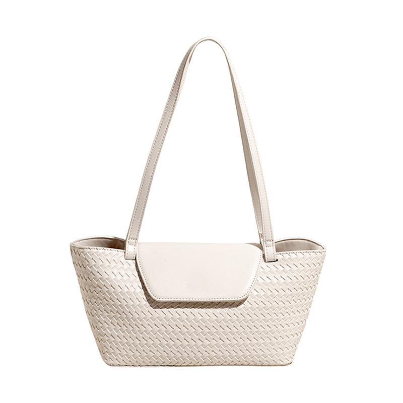 Нишевая ретро пляжная плетеная сумка из соломы новая летняя женская сумка повседневная на плечо под мышку сумка-тоут белый