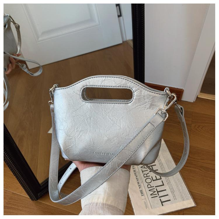 Нишевая ретро-сумка женская новая работа универсальная высокофактурная мягкая кожа большая вместимость сумка-мессенджер серебряный