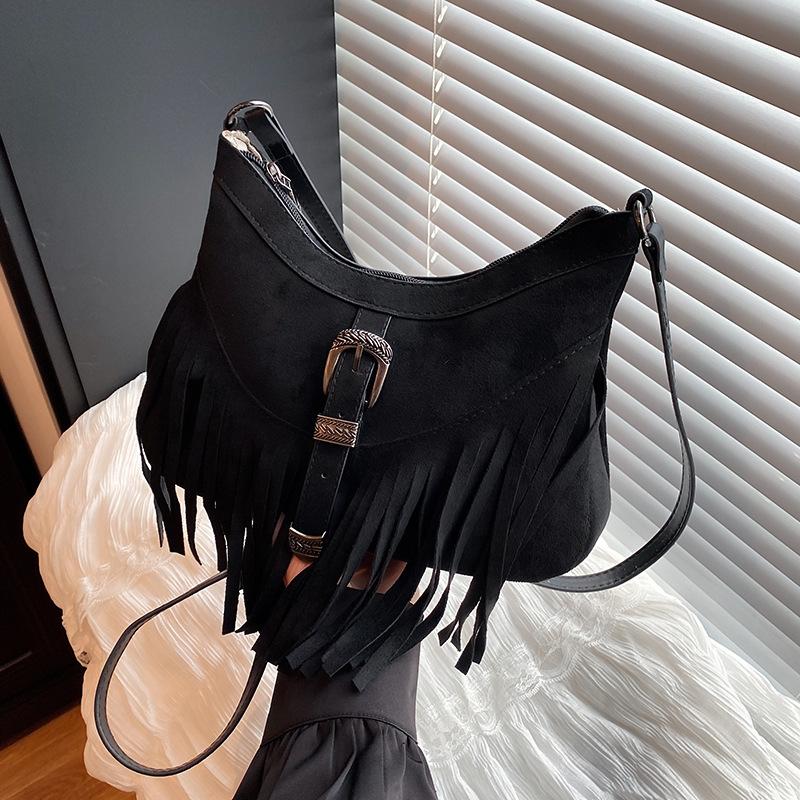 Нишевая сумка-тоут под мышкой с кисточками женская 2025 новая популярная модная высококлассная ретро сумка на плечо сумка-мессенджер для поездок на работу чёрный