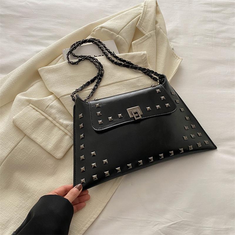 Нишевая текстура ретро подмышки большая женская сумка 2024 весна цепь сумка-мессенджер новая мода ретро сумка-конверт чёрный