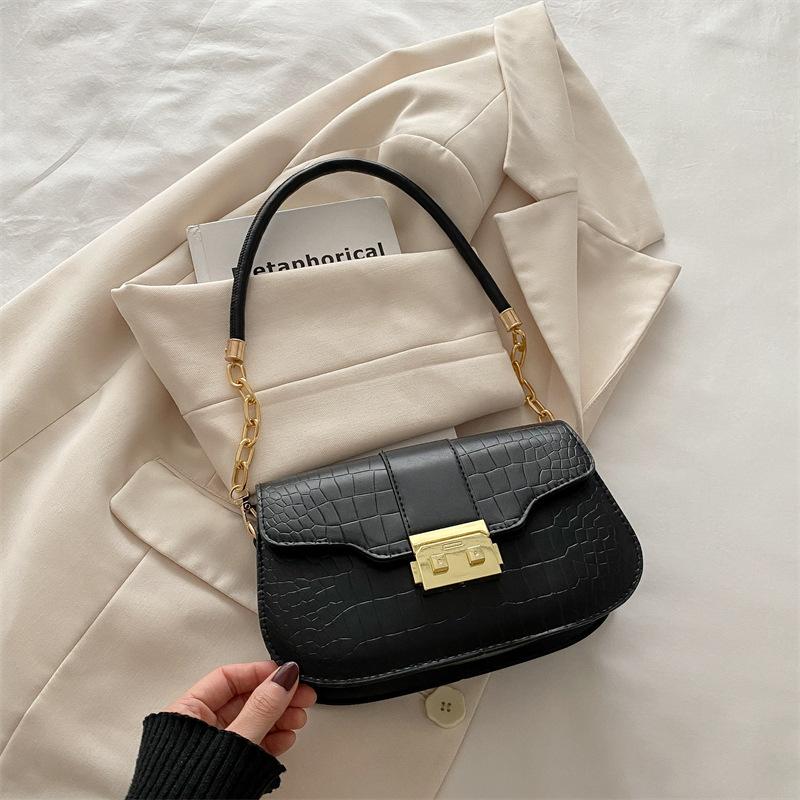 Нишевая текстура, узор крокодила, маленькая квадратная сумка, женская мода, зарубежный стиль, высокая ценность, наплечная сумка, универсальная сумка-мессенджер чёрный