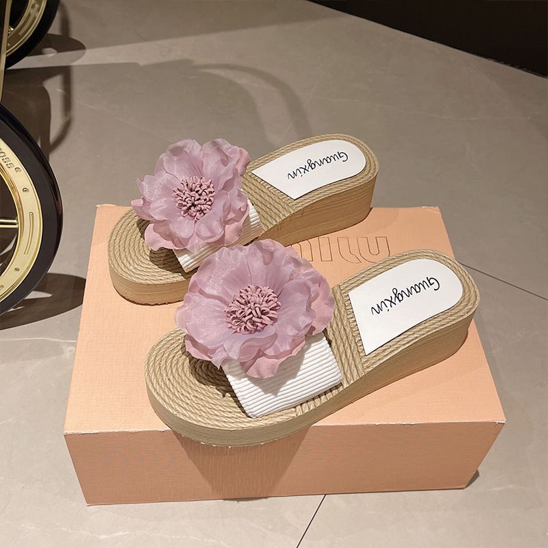 Нишевые новые шлепанцы на танкетке с феей, летняя мода, плетеные цветы, платформа, пасторальные, для отпуска, пляжная обувь 40
