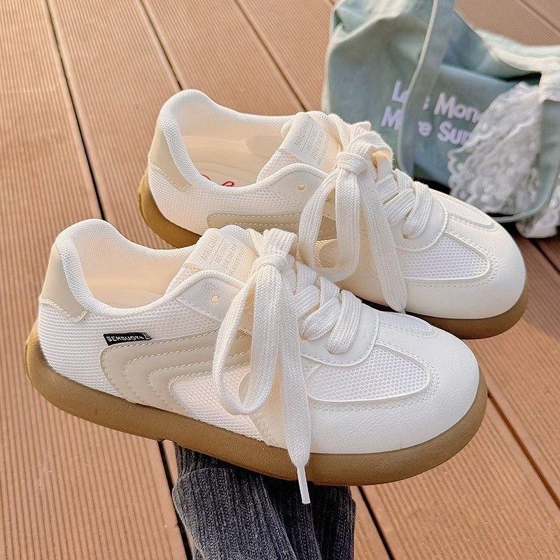 Нишевые оригинальные универсальные маленькие белые туфли женские 2025 лето новые круглый носок немецкие тренировочные туфли дышащая сетка повседневные спортивные туфли 40