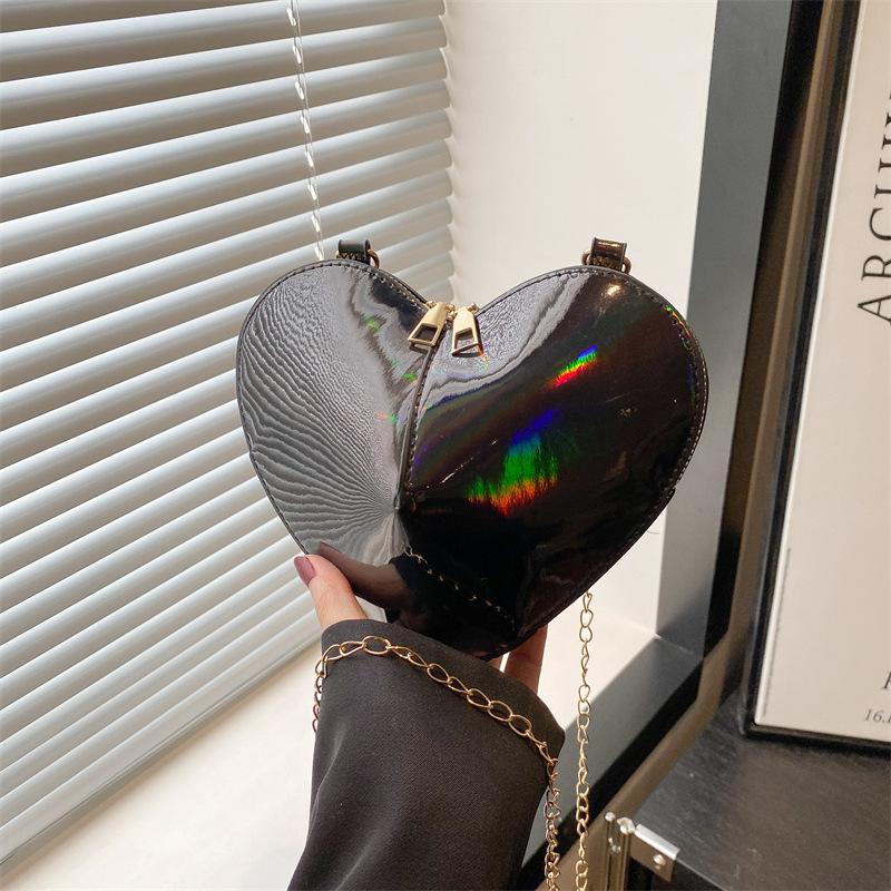 Нишевый дизайн лазерная глянцевая сумка-мессенджер в форме сердца весна и лето популярная цепочка на плечо женская чёрный