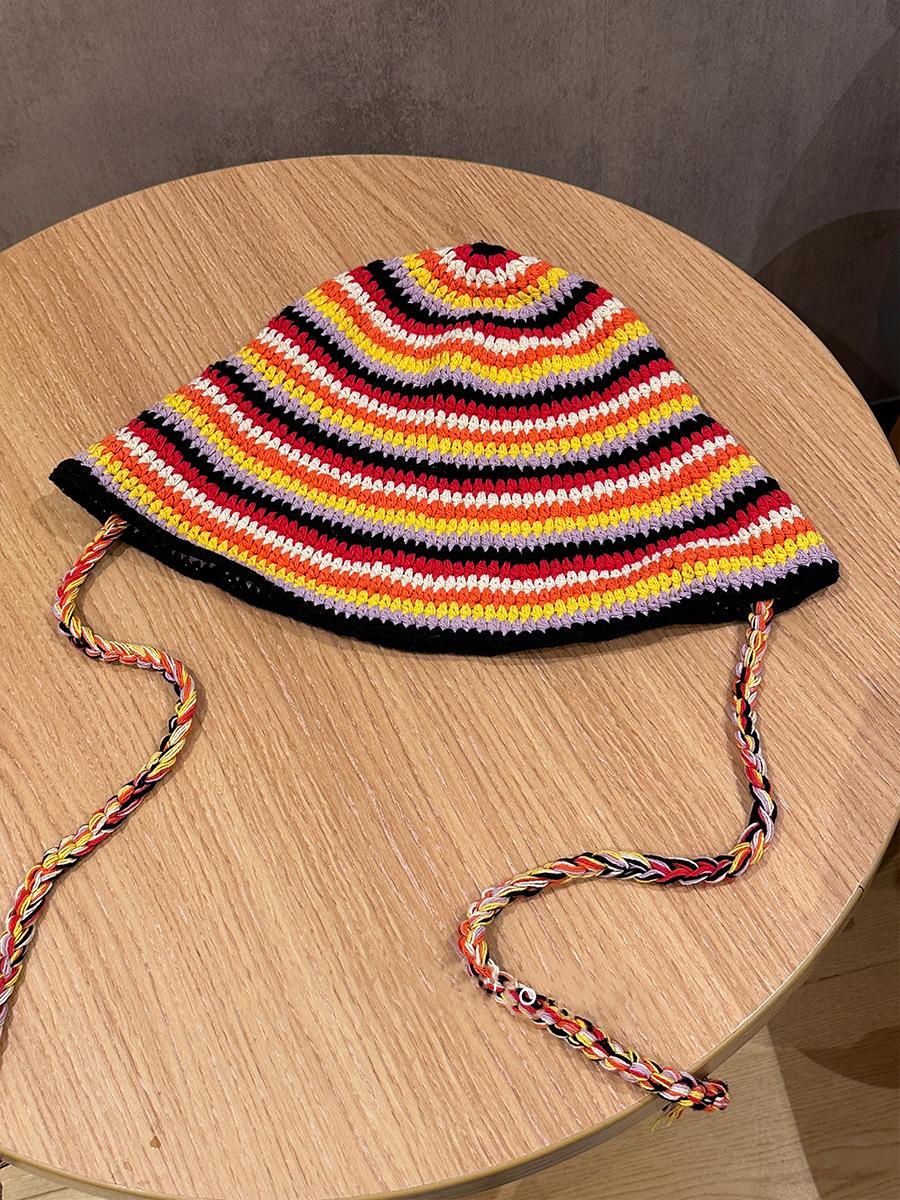 Нишевый дизайн, сочетание цветов, полосатая вязаная панама ручной работы, женская, для маленького лица, милая, на шнуровке, шляпа-ведро, шляпа от солнца average size оранжево-красный